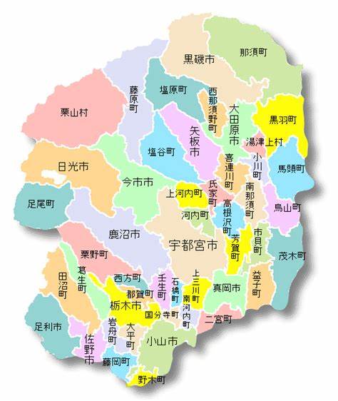 宇都宮市 足利市 佐野市 栃木市 鹿沼市 日光市 小山市 真岡市 大田原市 矢板市那須塩原市 さくら市 那須烏山市 下野市 河内郡上三川町 芳賀郡益子町 芳賀郡茂木町 芳賀郡市貝町芳賀郡芳賀町 下都賀郡壬生町 下都賀郡野木町 塩谷郡塩谷町 塩谷郡高根沢町 那須郡那珂川町 那須郡那珂川町